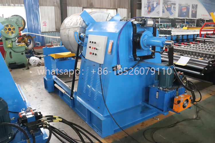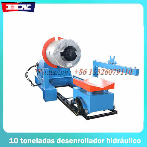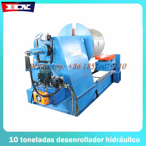 Esta maquina desbobinador de 10 toneladas es formadora, aplicada en el campo de construcción. El principio de funcionamiento de esta maquina es presionar bobinas de zinc o aluzinc, utilizando rodillos de 45# acero, deseñados de acuerdo con los modelos, y conformar las planchas en tejas metalicas.