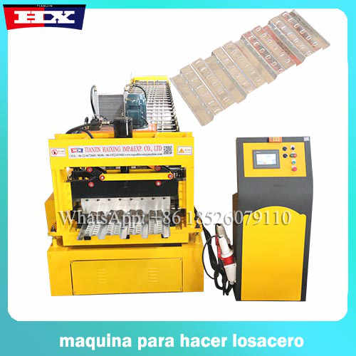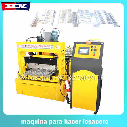 Esta maquinas para metaldeck es formadora, aplicada en el campo de construcción. El principio de funcionamiento de esta maquina es presionar bobinas de zinc o aluzinc, utilizando rodillos de 45# acero, deseñados de acuerdo con los modelos, y conformar las planchas en tejas metalicas.